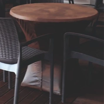 Trendy cognac lederlook met rits, exclusief tafel.