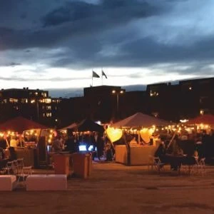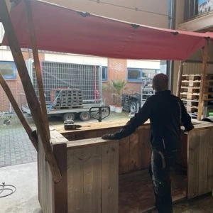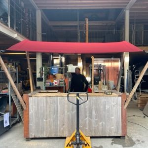 Zandkleur of rood doek. Afmetingen doek ca. 3,5 x 1,5 meter.