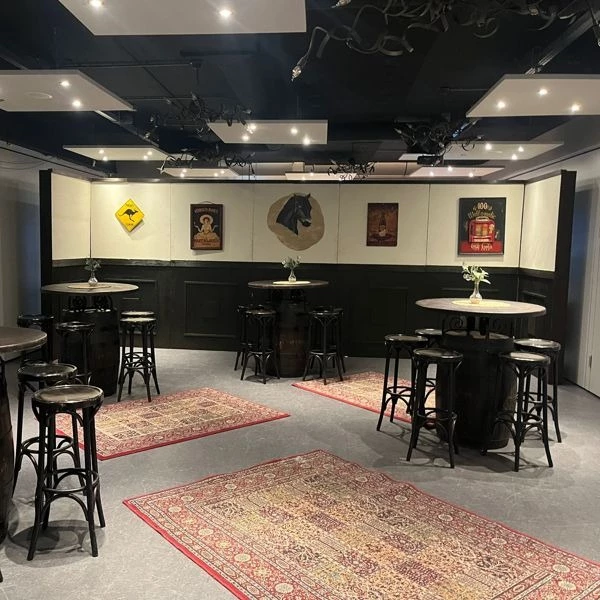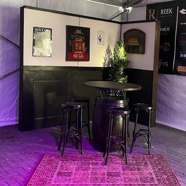 Bruin café stijl, ca. 7 meter breed en 2,5 meter hoog.
