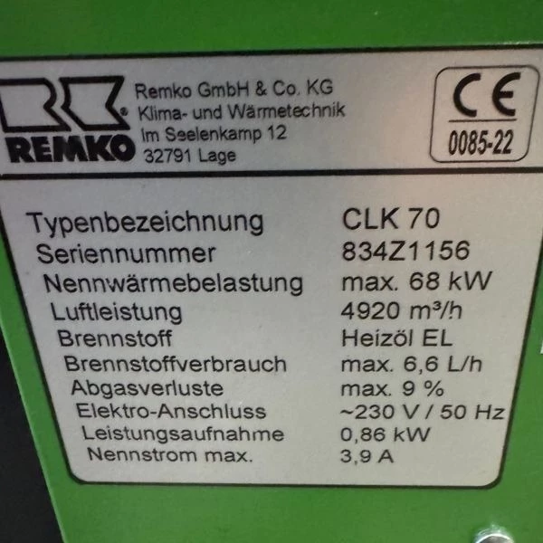 1915 Kachel indirect gestookt 65 Kw Remko 230v/1000watt