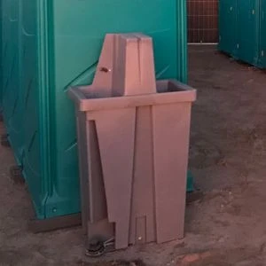Een 2-persoons handwas unit met 2 handige voetpompen.