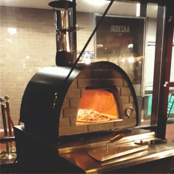 Hout gestookte pizzaoven op wielen, exclusief hout.