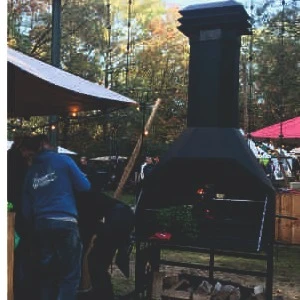 Inclusief gietijzeren potje, rvs roosters en steakrooster. Exclusief hout.