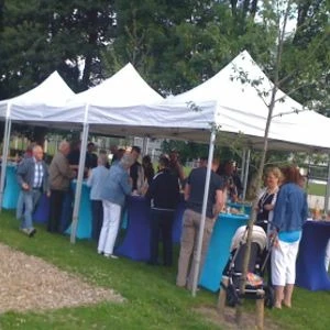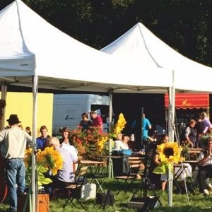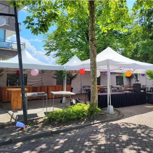 4 x 4 meter, uitklapbaar. Zonder zijzeilen. Exclusief op- en afbouw.