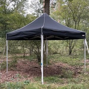 3 x 3 meter, uitklapbaar. Zonder zijzeilen.