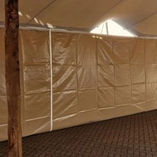 zijwand voor stretchtent 5m breed en 2,3m hoog met rits zandkleur met raam